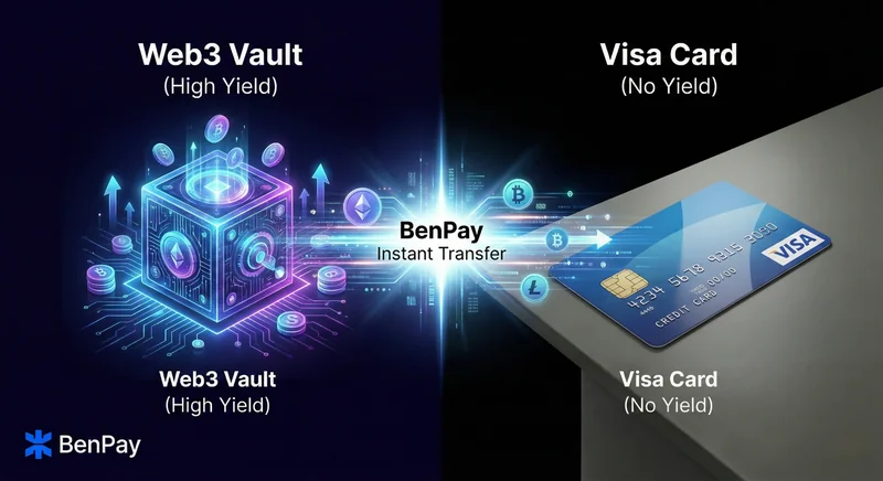 However, platforms like BenPay allow you to bridge this gap manually but instantly. By keeping your capital in the DeFi Earn module (earning ~5-10% APY) and only moving specific amounts to your Alpha Card at the moment of spending, you create a "Just-in-Time" Liquidity System. This strategy minimizes "idle cash" and ensures your money works for you until the very last second.